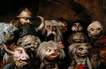 (1) From the Rankin Bass production of The Hobbit. The captives are dwarves, not goblins. (2) A goblin from Harry Potter, conceived as exaggerations on bankers. (3) Lord of the Rings goblin/orc. (4) A page from the 1977 “Advanced Dungeons and Dragons Monster Manual.” (5) Goblins from Labyrinth.