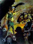 By the 1800s, goblins had settled into being evil. (In Dickens’s story, the goblins scare a Scroogelike grave digger into making merry at Christmas, so they’re only halfway evil, or severely morally challenged.) They remained humanoid, but they could be any size. In all the examples that I can find, goblins wore hats. Note that, in the 1800s, everybody wore hats. It is tempting to conclude that goblins were used as allegorical representations of elements of real society.