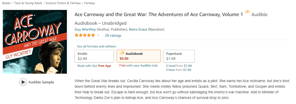 These lists are not meant to be exhaustive. In fact, they are merely the places where Ace Carroway and the Great War is available in audio format. Want to know more? Did I bugger something up? Let me know in the comments.